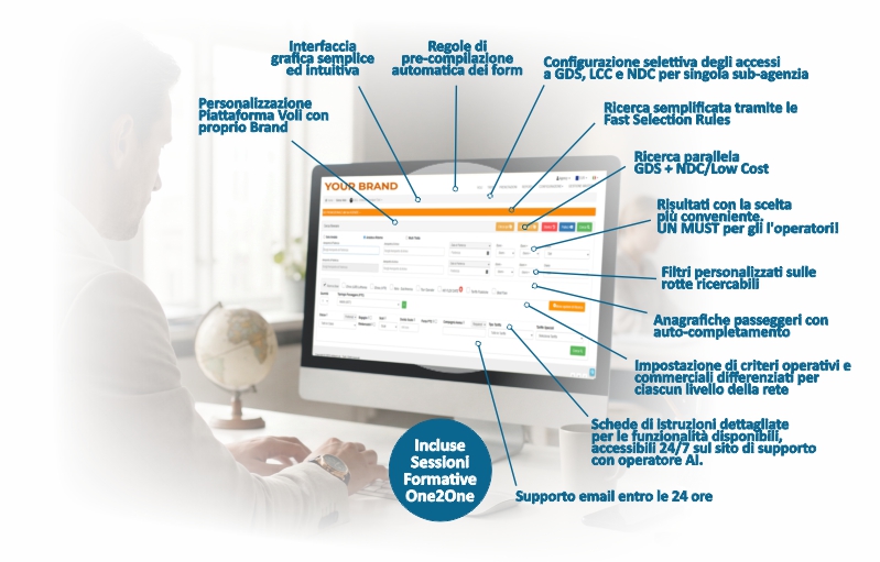 La piattaforma abilita una rete strutturata di sub-agenzie con configurazioni personalizzate di contenuti, rotte, modalità di